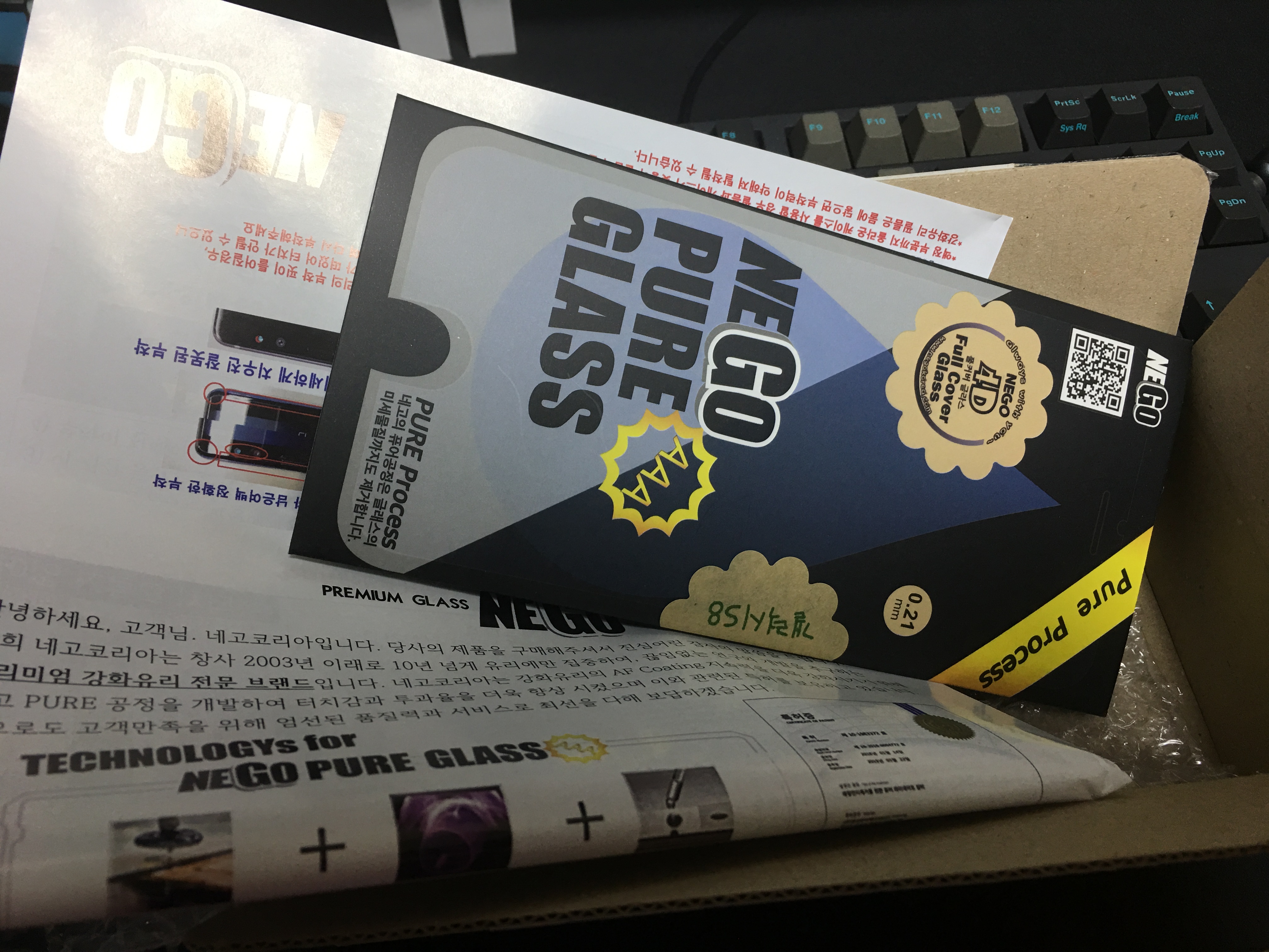 와이프가 액정에 금이가서 다시 강화유리 필름을 구매했습니다.